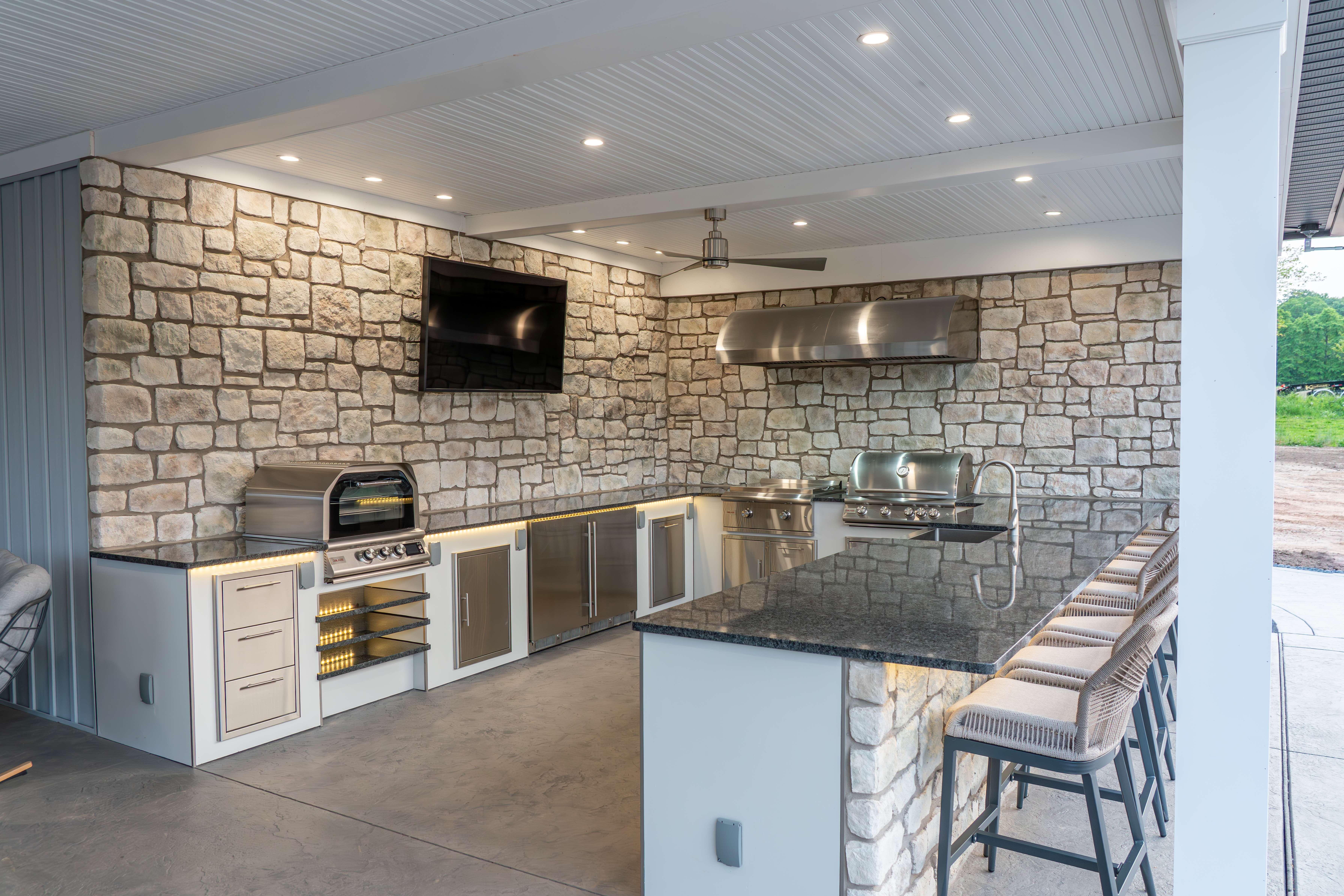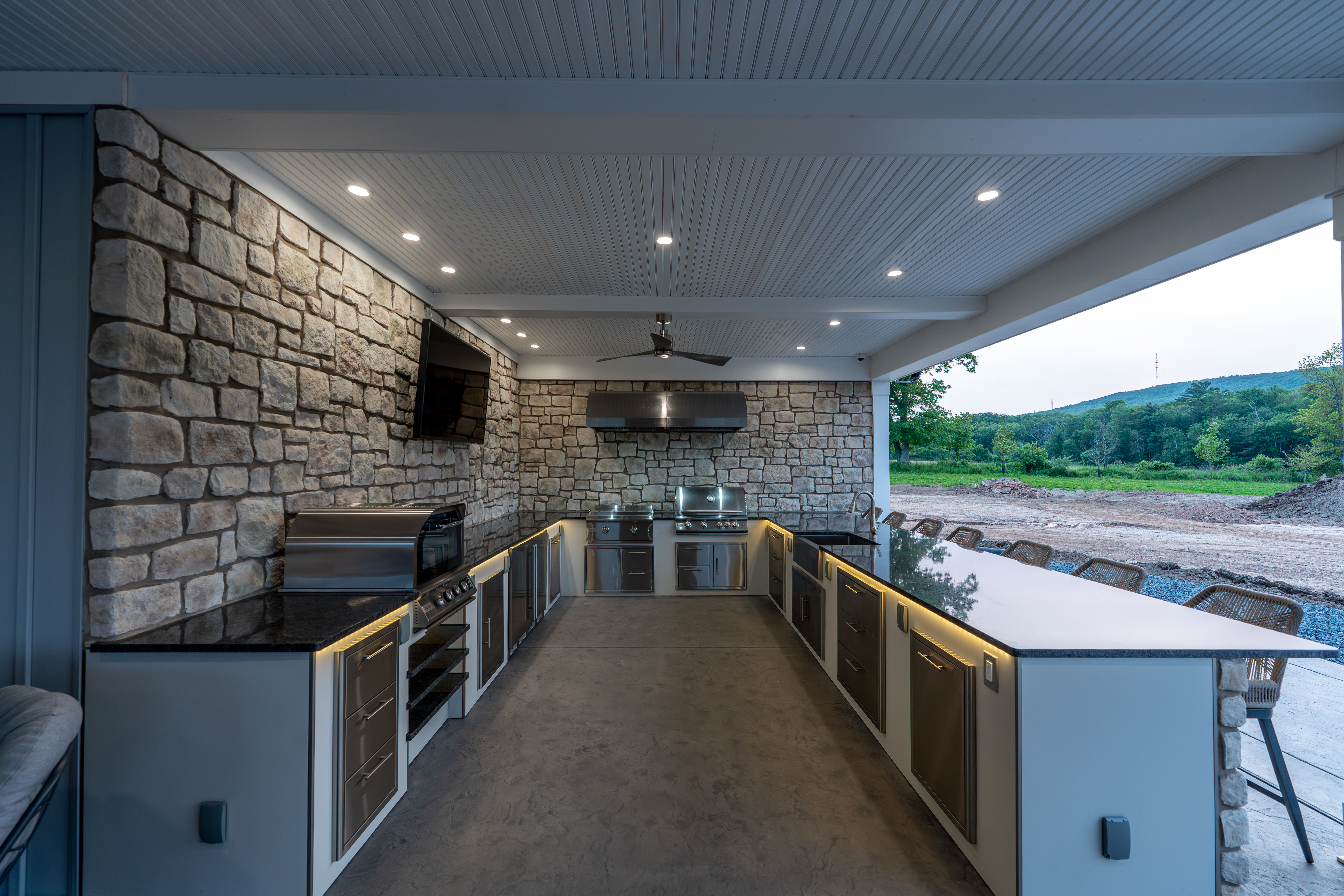 How much more time would you spend in the backyard if you had an Outdoor Kitchen installed? There is nothing better than gathering around the table and outdoor kitchens day after day! Outdoor Living Foundations has revolutionized how outdoor hardscaping projects can be installed in record time for outdoor kitchens, islands, and even sitting walls! Being brand new to hardscaping, never before has constructing a fully customized outdoor kitchen, island, counter, or bar top been this easy! Visit our Indoor Showroom, contact us, or submit a design consultation below to get started today!